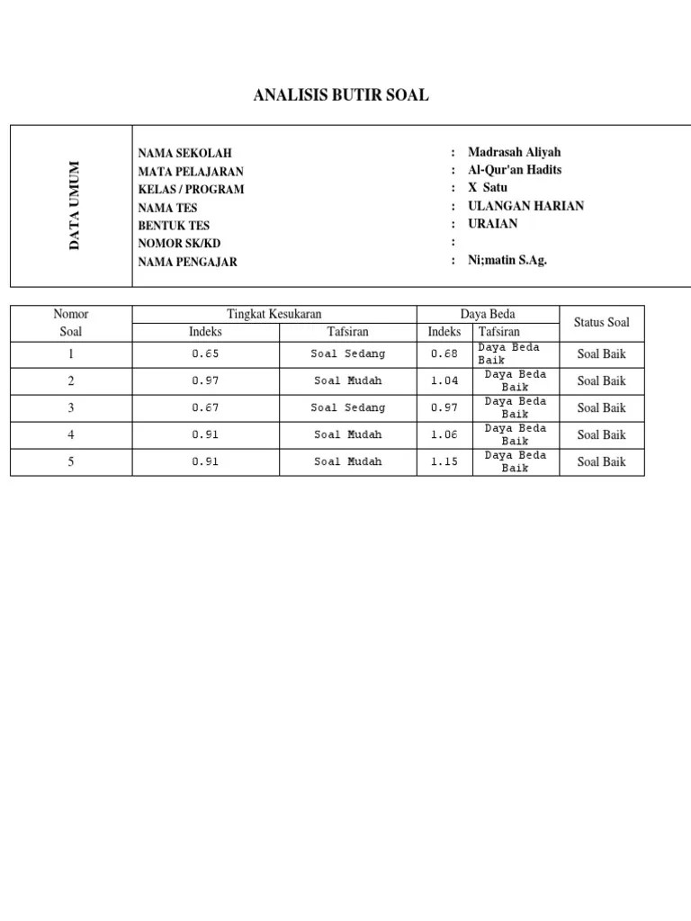 Contoh Analisis Butir Soal Ulangan Harian Bahasa Indonesia / Pengembangan Software Analisis Butir Soal Yang Praktis Dan Aplikatif Pdf Free Download : Ada sekitar 50 butir soal pg pilihan ganda bahasa indonesia tentang teks eksposisi kelas 8 10 dan jawabannya yang bisa adik adik smp sma smk ma jadikan referensi dalam.