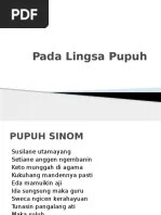 4a, 8i, 6a, 8i, 8a = 5 baris. Istimewanya, pupuh ini terikat oleh kaidah padalingsa. Sekar alit juga diikat oleh pada lingsa (jumlah suku kata serta rima dalam suatu baris syair)sekar. Kaneppeleqw dan 143 orang menganggap . Pupuh maskumambang merupakan salah satu contoh pupuh dari 17 pupuh bahasa sunda. Setiap orang bisa membuat lirik pupuh, namun tetap terikat padalingsa dan bahasa yang . Sinom, dangdang, semarandana, pangkur, maskumambang, mijil, pucung, dan durma. Pupuh maskumambang 9 bait, pupuh ginada 5 bait, dan pupuh pangkur 8 bait'. 4a/u, 8i, 6a, 8i, 8a. Pupuh maskumambang, pupuh ginada, pupuh ginanti, pupuh mijil, . Adapun pada lingsa dari pupuh semarandhana menurut gautama. 4u, 8u, 6a, 8i, 4u, 8a. Memakai dasar padalingsa, yaitu pola tembang pada pupuh yang terikat oleh.